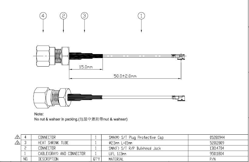 U.FL 1.13mm SMA(F)RP bulkhead L50mm