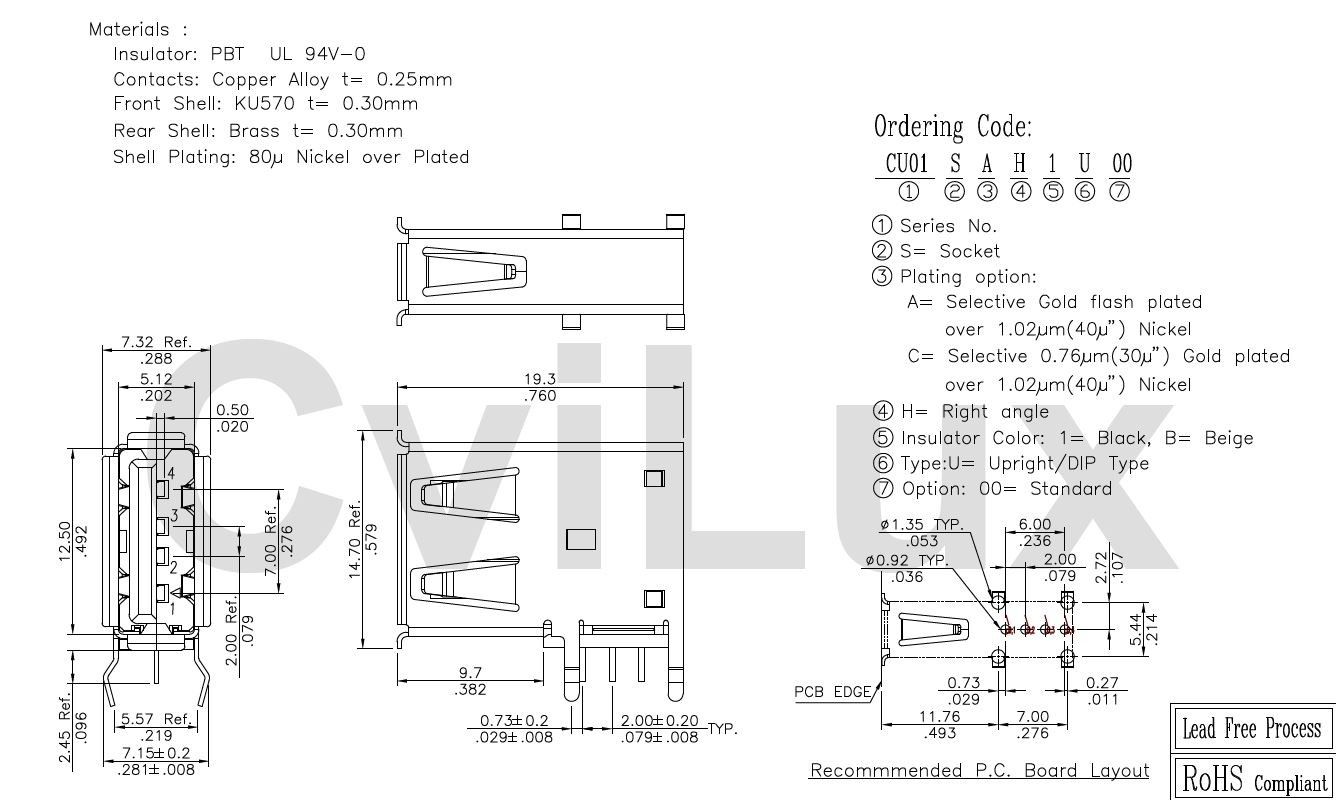 - Product path Home Elgood representationsCviluxCvilux USB Connectors USB-A horizontal vertical black pcb flash Au
