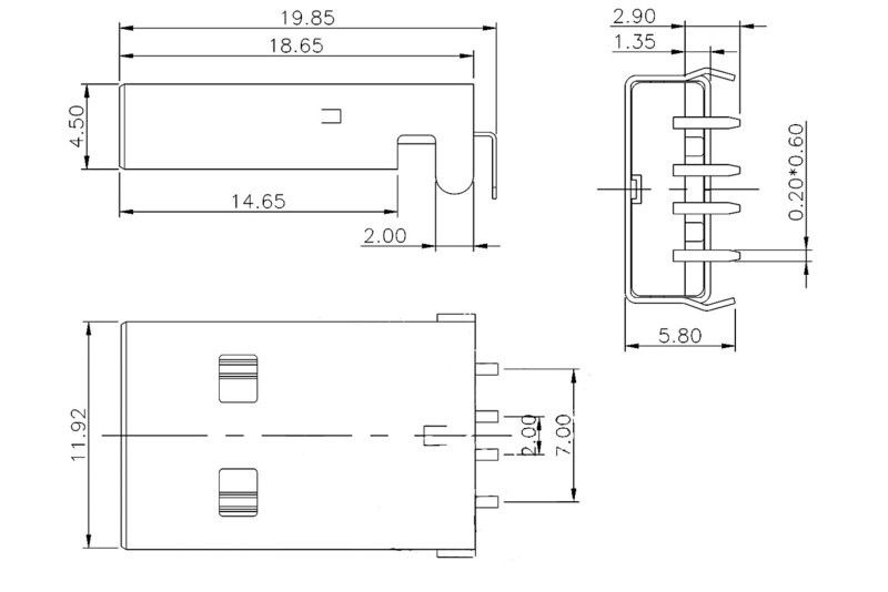USB A MALE CONNECTOR ANGLED PCB