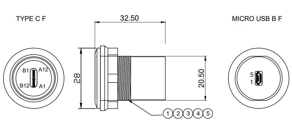 - Product path Home Connector AdaptersData AdaptersUSB Adapters USB C Jack to Micro USB Jack Round Panel Mount Adapter