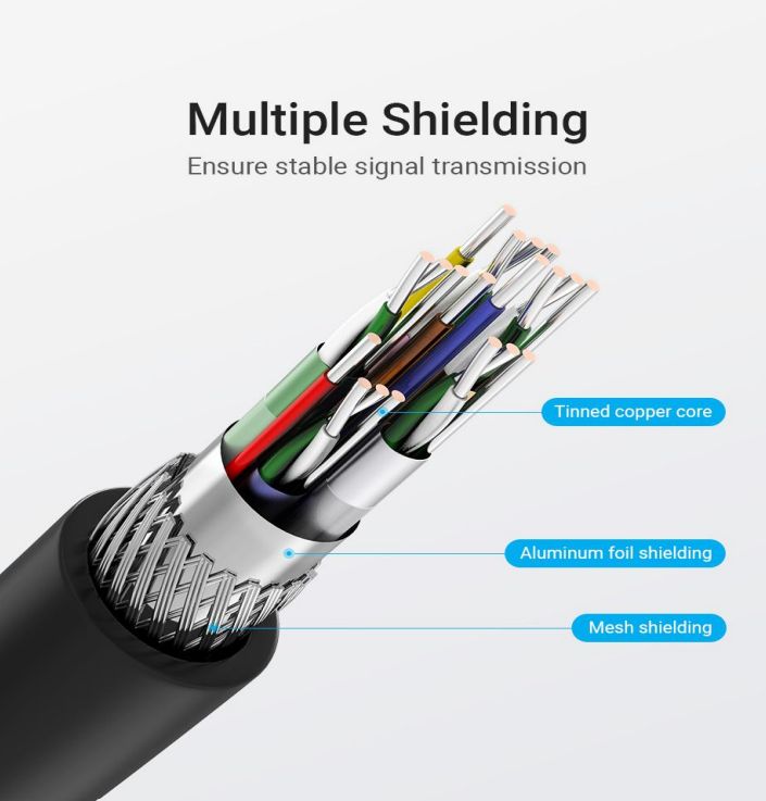 The Vention HDMI cable has an angled connector and provides a crystal-clear picture. Its speed is up to 18 Gbps and it also supports HDR and 60 fps.