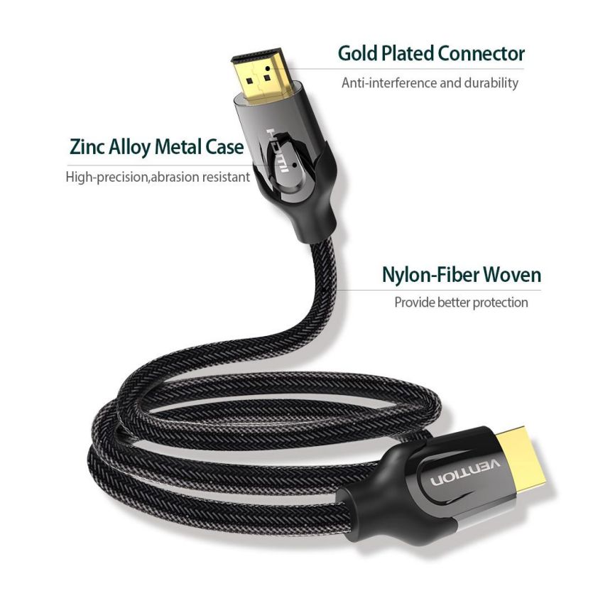 Vention VAA-B05-B075 - black HDMI 2.0 cable with nylon braid, length 0,75m.