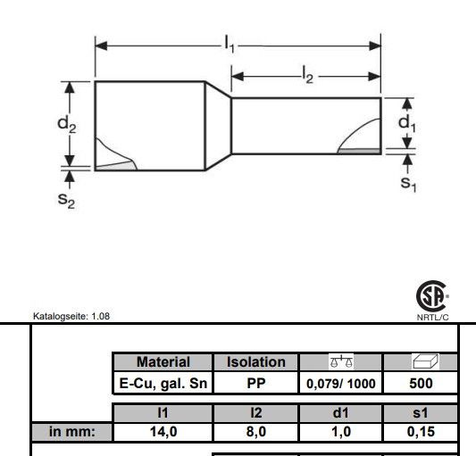 - Product path Home AccessoriesElectrical SuppliesTerminal Lugs WIRE END FERRULE 0,5mm2 WHITE 100pcs
